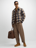Stay cozy and stylish with our blue check padded shacket from Exact. Made from melton fabric, features include a classic check print, padded design, two chest pockets, and a button-up front. Perfect for layering over your favorite outfits.