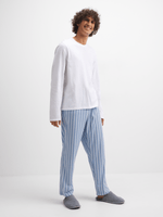 Stay cozy all night long in these Exact flannel sleep pants. Made with soft flannel fabric for ultimate comfort. Features a classic blue and white stripe. Pair with your favorite sleep shirt for a relaxed look. Designed to keep you warm and comfy without sacrificing style.