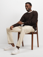 Stay cozy in our brown jersey with a classic crew neck and stylish cable knit design.This top is perfect for chilly days, feel comfortable and stylish all day long.