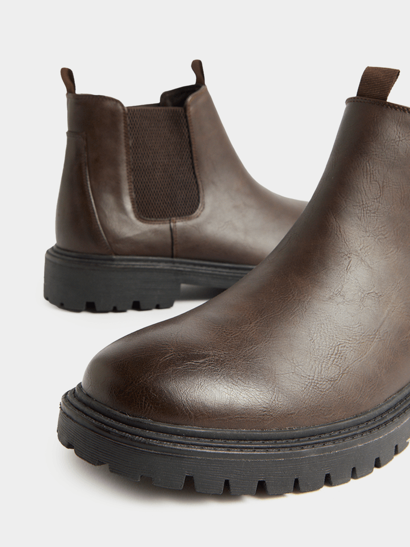 Step out in style with our Exact men's brown chelsea boots! These boots are designed for comfort and durability. Easy to slip on and off with the elastiacted sides, they feature a sleek and timeless design that pairs well with any outfit.