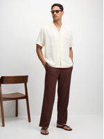 Elevate your wardrobe with these stylish pull-on pants from Exact. Made from linen blend fabric, features an elasticated waist with drawstring and 2 side pockets. Pair it with the matching shirt for a cool and stylish look.