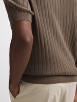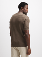 Get cozy in our brown ribbed knit t-shirt, made from soft cotton fabric for ultimate comfort. This classic piece features a chocolate chip color that's easy to mix and match. It's perfect for everyday wear. Stay stylish and comfy all day long!