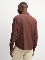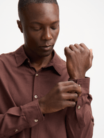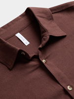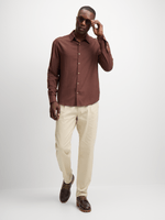 Elevate your wardrobe with this versatile chocolate brown shirt from Exact. Made from a linen blend fabric, it features a classic collar, long sleeves, and a button-up design. Pair with shorts or chinos for a stylish look.