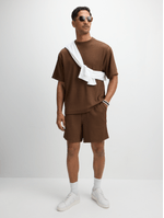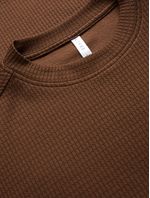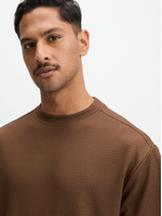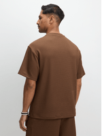 Elevate your everyday look with this brown textured t-shirt. Made from a textured jacquard fabric, featuring short sleeves and a crew neck. This tee is perfect for mixing and matching. Pair it with the matching shorts or your favorite bottoms for a laid-back look.