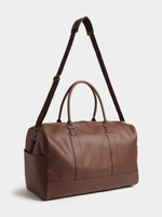 Elevate your travel style with this spacious brown weekender bag from Exact. This bag features an adjustable crossbody strap, hand straps, 2 side pockets and a stylish Nguni badge. Pack up and hit the road in style with this reliable companion.