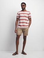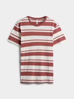 Burgundy and white striped,