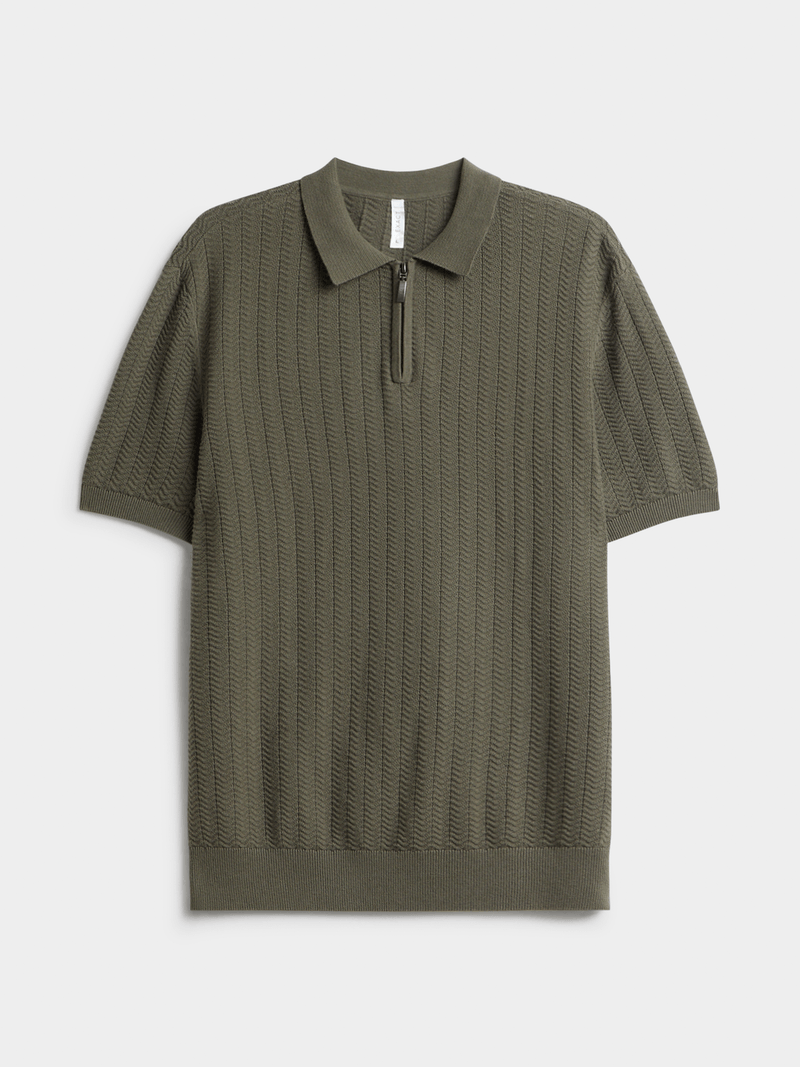 Stay stylish and comfortable with our fatigue textured quarter zip golfer. Made from a textured cotton knit fabric for a cozy feel, with a quarter zip neck for easy wear. Pair with your favorite bottoms for a classic look.