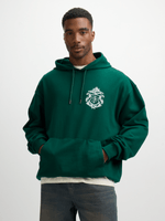 Stay cozy and stylish with this green back print hoodie from Exact. Made from cotton rich fleece fabric, this hoodie features a front and back print, a hood with a drawstring and a front kangaroo pocket. Perfect for a casual day out or lounging at home. Add this versatile piece to your wardrobe today!