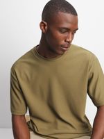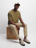 Elevate your casual style with our olive green textured t-shirt. Pair with chinos or jeans for a laid-back look.