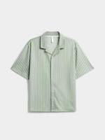 Get ready for summer in style with our green and white striped shirt. Made from a comfortable knit fabric, featuring a collar, button up and short sleeves, this shirt are perfect for any casual occasion. Complete the look with your favorite bottoms or the matching shorts.