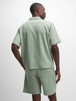 Get ready for summer in style with our green and white striped shorts. Made from a comfortable knit fabric, these shorts are perfect for any casual occasion. Complete the look with your favorite top or the matching shirt.