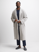Stay cozy and stylish in our grey gown made from soft coral fleece in a comfortable fit. Perfect for lounging at home or staying warm on chilly nights. A must-have addition to your wardrobe.