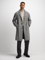 Stay warm and stylish with this grey melton coat. Made with melton fabric, this coat features side pockets and a button-up front. Perfect for layering over a sweater or suit, whether you're heading to the office or out for the night.