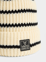 Stay warm in style with our natural and black-striped beanie from Exact. This beanie is perfect for cold weather. Pair with any outfit for a casual and trendy look.
