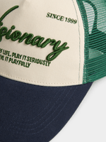 Stay cool and stylish with our natural, green and navy from Exact. Featuring a slogan embroidery, this cap is perfect for adding a unique touch to any outfit.