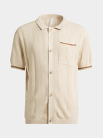 Stay casual yet sharp with our knitwear tipped shirt. Made from a soft cotton knit, this shirt is perfect for everyday wear. It features classy brown tipped sleeve cuffs and a chest pocket. Look effortlessly stylish with this versatile piece.