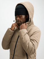 Stay warm in style with our Exact natural puffer jacket. Made from durable ripstop fabric, featuring an adjustable hood and side zip pockets. Keep cozy without compromising on fashion. Perfect for chilly days.