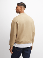 Stay warm and stylish with our natural ribbed cardigan. Made from cozy fleece, this cardi is perfect for chilly days. It features a classic ribbed design with a v-neck and brown buttons. Keep cozy and cool in this wardrobe essential.
