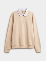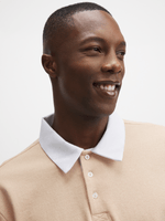 Stay comfortably stylish with our versatile natural rugby golfer. Made with a cozy fleece fabric, this golfer features a contrast white collar and button up lapel. Dress it up with chinos or down with jeans and sneakers.