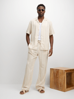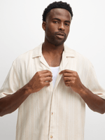 Elevate your wardrobe with this versatile natural striped shirt from Exact. Made from a linen blend fabric, it features a classic collar, short sleeves, and a button-up design. Pair with shorts or the matching pants for a stylish look.