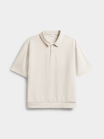 Elevate your style with our natural textured golfer. Made with a textured twill like fabric, featuring a sweat banded hem and button up lapel for a smart look. Stay effortlessly trendy with this versatile piece.