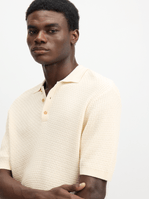 Look effortlessly stylish in our Exact natural textured knit golfer. Made from cotton knit fabric, featuring a button up lapel with collar for a smart look. Dress it up with your favourite chinos or jeans and sneakers.