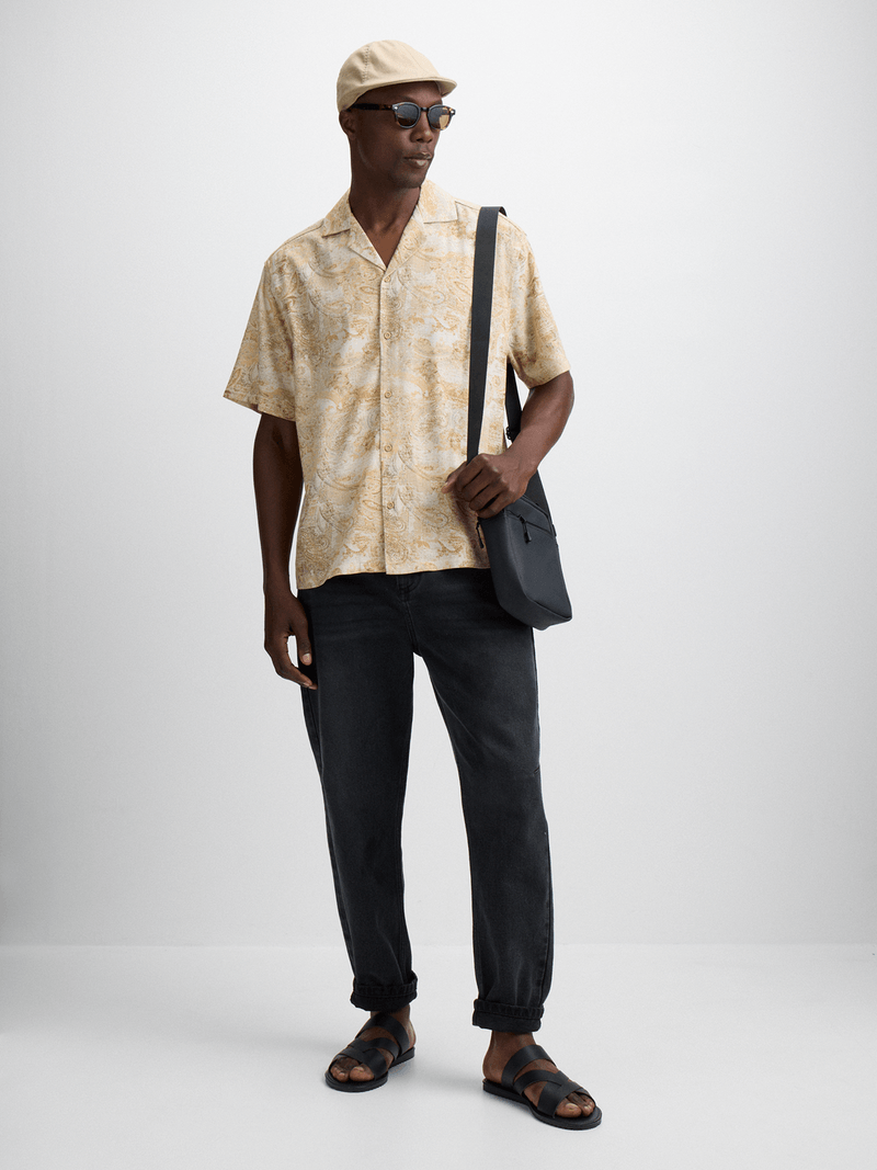 Get that effortlessly stylish look with our natural tonal paisley print shirt. Made from a linen blend, it features a classic collar, short sleeves, and a button-up design. Pair with shorts or chinos for a stylish look.