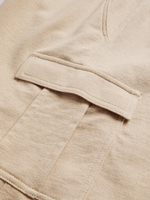 Stay cozy and stylish in these utility knit shorts. Made with cotton rich fleece fabric, these shorts feature utility side pockets and an elasticated waist with drawstring for a comfortable fit and feel. Pair with your favorite top for a laid-back vibe.