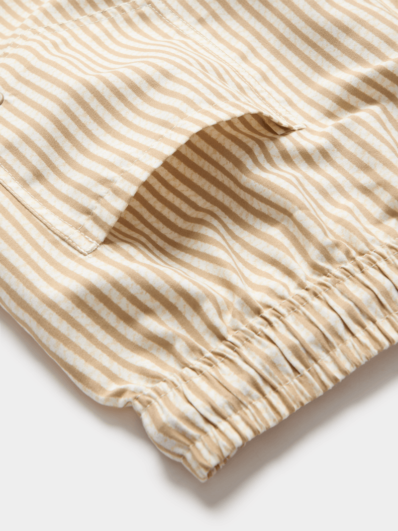 Embrace sunny days with our natural seersucker swim shorts from Exact. These shorts featue 2 side pockets, 1 back pocket, and an elasticated waist with drawstring for a comfortable fit. Perfect for pool parties or beach escapades.
