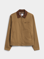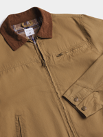 Get the job done in style with our natural worker style jacket with contrast collar. Made from durable 100% cotton canvas fabric, this jacket features a cool checked lining, chest zip up pocket and side pockets, adjustable waist and sleeve cuffs. Stay comfortable and trendy wherever you go.
