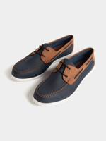 Step up your footwear game with these Exact navy and brown boat shoes. These shoes are trendy and give your look the perfect blend of style and comfort. They boast a versatile design that will elevate any outfit.