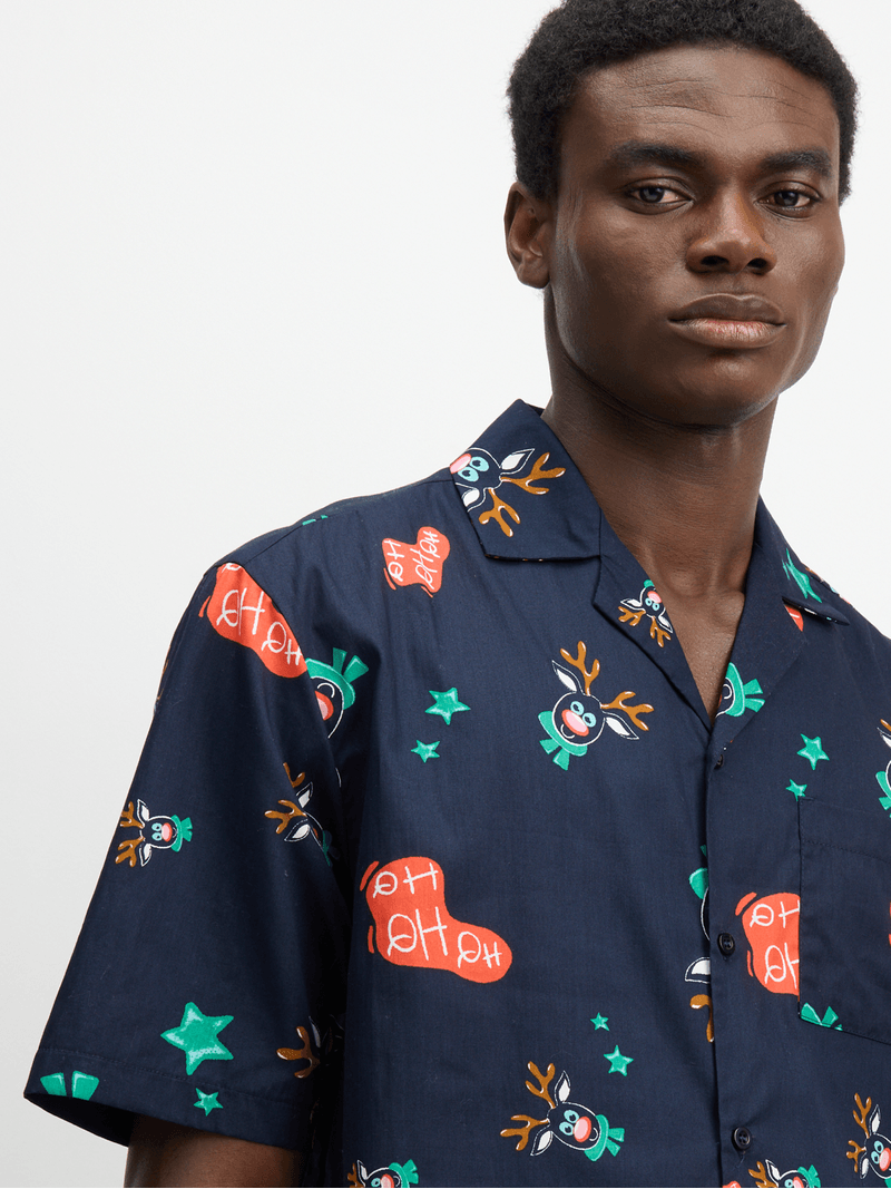 Get into the festive spirit with our cozy navy christmas sleepwear set from Exact. Made from soft cotton, this set features a christmas reindeer print shirt and matching shorts. Perfect for lounging or sleeping in style. Match with the whole family this festive season!