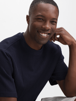Get your hands on this Exact navy textured t-shirt for a casual and stylish look. The fabric is a textured knit fabric, and is soft and comfortable, perfect for everyday wear. This tee is a must-have for your wardrobe.