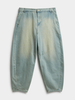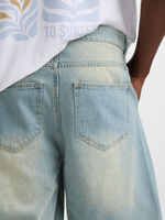 Experience the laid-back style of our Exact tea-stain wash barrel leg jeans. These jeans feature a relaxed barrel leg design in a light tea stain wash, with 5 pockets, and belt loops. Perfect for any casual occasion. Stay comfortable and trendy all day long.