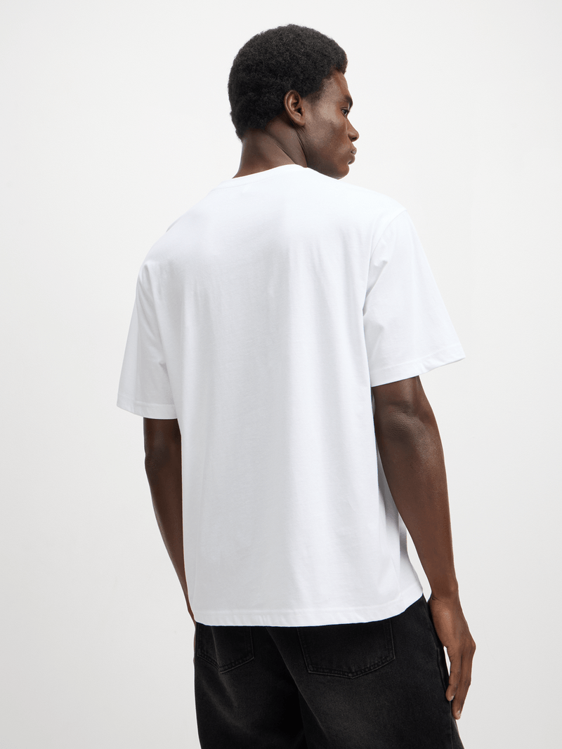 Stay stylish with this Exact white embossed t-shirt. Made100% cotton fabric, this tee features a unique embossed slogan on the chest. It's a versatile piece perfect for any wardrobe.