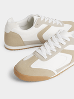 Step up your sneaker game with these fresh white and natural colourblock kicks. These court sneakers are stylish and versatile. Perfect for everyday wear with a comfortable fit. Get ready to step out in style!