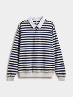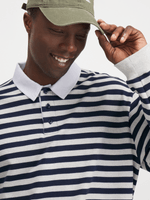 Stay stylish and comfortable in our striped rugby golfer. Made with a soft fleece fabric, this golfer features a contrast woven collar, striped design, and ribbed cuffs and hem. Dress it up with chinos or down with jeans and sneakers.