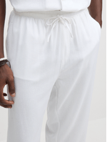 Elevate your wardrobe with these stylish pull-on pants from Exact. Made from linen blend fabric, features an elasticated waist with drawstring, 2 side pockets and 2 back pockets. Pair it with the matching shirt for a cool and stylish look.