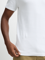 Stay effortlessly cool in this classic white ribbed tee from Exact. Made from soft cotton, this tee features a crew neck and short sleeves for a comfortable fit. Pair it with anything from jeans to shorts for a versatile look. Keep it simple, keep it stylish.