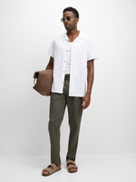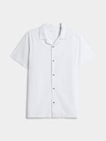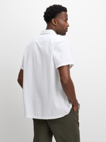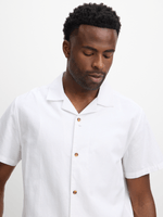 Elevate your wardrobe with this versatile white shirt from Exact. Made from a linen blend fabric, it features a classic collar, short sleeves, and a button-up design. Pair with shorts or chinos for a stylish look.