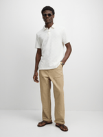 Stay stylish and comfortable with our Exact white golfer. Made from a textured knit fabric, this golfer features a modern diamond rope design and a button up lapel. Keep your wardrobe fresh with this versatile addition that's perfect for any occasion.