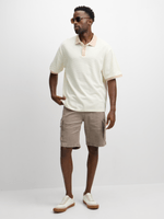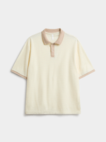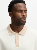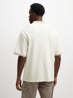 Elevate your style with this textured golfer in crisp white. Made from ottoman fabric, this top features contrast natural detailing, short sleeves, and button up lapel. Pair it with your favorite bottoms for a versatile look.