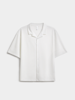 Elevate your wardrobe with this versatile white textured knit shirt from Exact. It features a classic collar, short sleeves, and a button-up design. Pair with shorts or chinos for a stylish look.