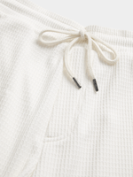 Stay comfy and stylish in these white textured shorts. Made from a textured jacquard fabric, features 2 sides pockets and an elasticated waistband with drawstring. Perfect for pairing with the matching tee for a laid-back look.