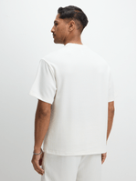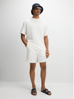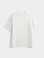 Elevate your everyday look with this white textured t-shirt. Made from a textured jacquard fabric, featuring short sleeves and a crew neck. This tee is perfect for mixing and matching. Pair it with the matching shorts or your favorite bottoms for a laid-back look.