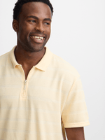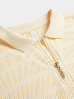 Stay stylish and comfortable with our new butter yellow textured quarter zip golfer. Made from a textured cotton knit fabric for a cozy feel, with a quarter zip neck for easy wear. Perfect for any occasion, this versatile golfer is a wardrobe essential. Designed for everyday wear, this top is sure to become a favorite in your collection.