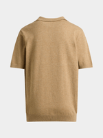Stay cozy and stylish with our Exact beige johnny collar top. Made with cotton rich knitwear fabric, this top features a unique johhny collar design and chest embroidery, in a neutral beige brown color. Keep your little man looking sharp without sacrificing comfort.