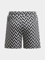 Elevate your little one's wardrobe with these stylish black and white chevron print shorts. Featuring an elasticated waist with drawstring for ultimate comfort. Perfect for keeping him comfy and stylish all day long. Pair with a tee and sandals and he is Summer ready!