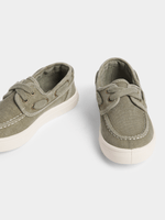Match dad in these mini me fatigue boat shoes. These sneakers are comfy and durable. Featuring a white sole, stitching and lace details. Get your little one ready to step out in style!