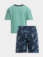 Get your little man ready for a good night's sleep with this adorable graphic print sleepwear set. Made from soft cotton, this set features a graphic print top and dino printed shorts. Perfect for lounging or snoozing.
